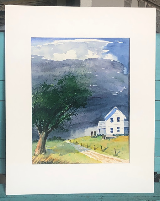 Today's watercolor is for him, as this life forces him to say "Check mate," and tip his king on its side. But the edge of the board fades into a new game.